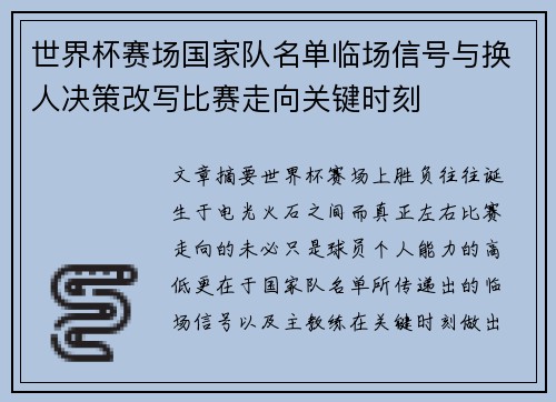 今晚世俱杯赛场冷门风险持续累积各队博弈暗藏变数胜负走向扑朔迷离